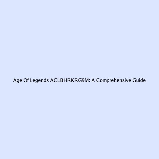 Age of Legends ACLBHRKRG9M: A Comprehensive Guide