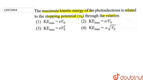 Alright, time for some action! We want to find the maximum velocity of the ejected electrons. We know the work function (4 eV), but we need to know the energy of the incoming light. Let’s assume we are using light that has an energy of 6 eV. First, we need to apply Einstein’s equation: E = Φ + KE . We know E (6 eV) and Φ (4 eV), so we can solve for KE : KE = E - Φ = 6 eV - 4 eV = 2 eV. This means the ejected electrons have a kinetic energy of 2 eV. Remember, 1 eV is roughly 1.6 x 10^-19 Joules. We need to convert the kinetic energy from eV to Joules: 2 eV * 1.6 x 10^-19 J/eV = 3.2 x 10^-19 J. Now, we use the kinetic energy formula: *KE = 1 2 * mv^2*, where m is the mass of the electron (approximately 9.11 x 10^-31 kg), and v is the velocity we’re trying to find. Rearranging the formula to solve for v , we get: *v = sqrt((2 * KE) / m)*. Plugging in the values, we get: *v = sqrt((2 * 3.2 x 10^-19 J) / 9.11 x 10^-31 kg)*. Calculate this, and you get a maximum velocity of approximately 8.39 x 10^5 m/s. This is a pretty significant speed! This is how we can determine the maximum velocity. Remember, all this is happening on a subatomic scale, but the principles remain the same. The maximum velocity calculation hinges on correctly applying the concepts of energy conservation and the relationship between kinetic energy, mass, and velocity. Therefore, understanding the steps is as important as getting the right answer!