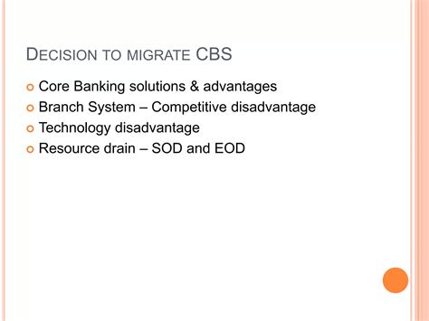 Now, let’s talk about CBS migration . Imagine your bank’s current CBS is like an old, but trusty, car. It gets you from point A to point B, but it’s starting to show its age. It might be slow, lack modern features, or not be compatible with newer technologies. CBS migration is essentially the process of upgrading or replacing this old CBS with a new, more advanced system. This could involve moving from an older version of the same software to a newer one, or it could mean switching entirely to a completely different banking software. Think of it like upgrading your smartphone. You move all your contacts, apps, and data to a shiny new device with better performance and more features. The goal of migration is to improve efficiency, enhance security, offer better customer service, and keep up with the ever-evolving digital landscape of the banking industry. It’s a massive undertaking, often involving intricate planning, extensive testing, and significant investment. Banks undertake CBS migration to stay competitive, comply with new regulations, and provide their customers with a superior banking experience. This process ensures that the bank can continue to offer innovative services and adapt to the changing needs of the market and its customers. It’s a strategic move that impacts every aspect of the bank’s operations and its relationship with its clients. The decision to migrate is usually driven by several factors, including the obsolescence of the current system, the need for greater scalability, improved data analytics capabilities, and the desire to integrate new technologies like AI and cloud computing. It’s not just a technical upgrade; it’s a business transformation aimed at future-proofing the bank.
