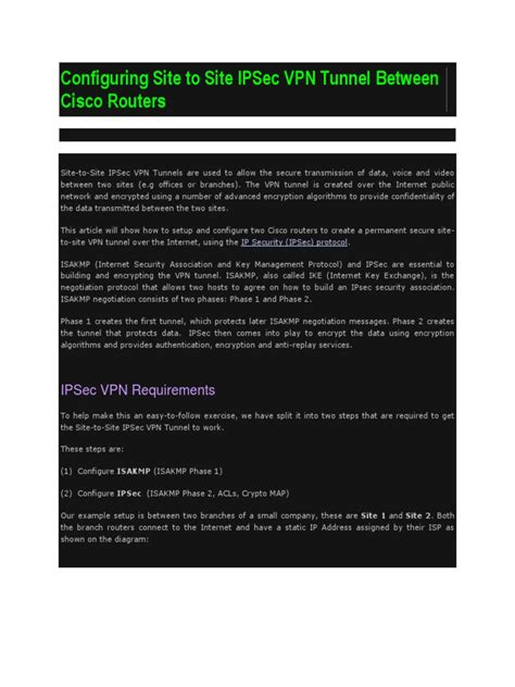 Hey guys, ever wondered how big companies keep their office networks connected and secure, especially when they have multiple locations spread out? Well, a huge part of that magic happens thanks to Cisco Site-to-Site IPsec VPNs . These aren’t just fancy acronyms; they’re the backbone of secure inter-office communication for tons of businesses worldwide. If you’re dealing with network security, especially in a multi-site environment, understanding how these VPNs work is super crucial. We’re going to dive deep into what they are, why they’re awesome, and how Cisco routers make it all happen. Get ready to beef up your networking knowledge!