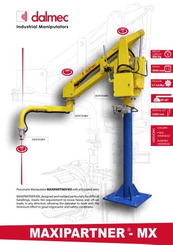 So, why is it so crucial to have the Dalmec manipulator PDF for your specific model? Because Dalmec offers a vast array of manipulators, each tailored with unique features and functionalities. A manipulator designed for lifting delicate glass panels will have different controls and safety mechanisms than one built for handling heavy drums of chemicals. The PDF manual is your definitive guide to understanding these nuances. It will detail the specific controls for your model – maybe it has joystick controls, push-button interfaces, or even specialized ergonomic grips. It will also outline the specific safety features, such as overload sensors, emergency stop buttons, and rotation locks, and explain how to use them correctly. Without the Dalmec manipulator PDF , you might be guessing about certain operations, which is a recipe for trouble. For example, a manual might explain a specific sequence for engaging a particular grip or releasing a load safely. Deviating from this sequence, even by accident, could compromise the integrity of the lift or even damage the product being handled.