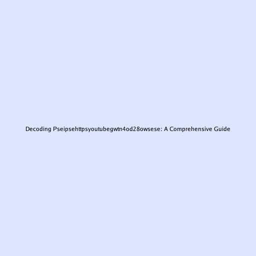 Decoding pseipsehttpsyoutubegwtn4od28owsese: A Comprehensive Guide