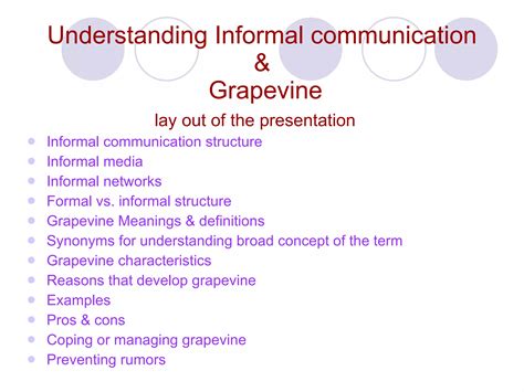 Alright, folks, let’s get real about the impact of the grapevine . Just like actual grapes, this informal communication network can be both sweet and sour, bringing both significant benefits and considerable drawbacks. On the sweet side, the grapevine can actually be a really useful tool. It often serves as a rapid communication channel, especially in organizations where official communication might be slow or overly formal. When management is slow to share news, the grapevine can sometimes fill the information void, giving employees a sense of what’s happening. This can be particularly true for urgent information that official channels haven’t yet addressed. Furthermore, the grapevine can be a powerful tool for social connection and morale building . Sharing tidbits of information, even gossip, can foster a sense of camaraderie among colleagues or friends, making people feel more included and part of an ‘in-group’. It can also be an early warning system , highlighting employee concerns, frustrations, or even emerging issues before they escalate. Leaders who pay attention to the grapevine can gain valuable insights into the morale and sentiment of their team, allowing them to proactively address problems. Sometimes, it even allows for the dissemination of positive news or informal recognition that might not fit into official channels, boosting team spirit. However, guys, we can’t ignore the sour side. The most significant negative impact of the grapevine is the rapid spread of misinformation and rumors . Because information on the grapevine is often unverified, it can quickly become distorted, exaggerated, or completely fabricated. This can lead to widespread confusion, anxiety, and even panic among individuals. Imagine a baseless rumor about job cuts circulating through a company – the resulting stress, decreased productivity, and loss of trust can be devastating. Moreover, the grapevine is notorious for damaging reputations . Gossip, especially if malicious or untrue, can severely harm an individual’s professional standing or personal relationships. Once a negative story spreads, it’s incredibly difficult to retract or correct, and the damage can be long-lasting. This constant undercurrent of unverified information can also create an environment of distrust and suspicion , eroding faith in leadership and amongst colleagues. When people are constantly wondering what’s true and what’s not, it becomes challenging to build a cohesive and productive environment. This can also lead to conflict and division , as individuals take sides based on unconfirmed reports or personal slights. Ultimately, the grapevine , unchecked, can significantly reduce overall productivity and efficiency as people spend time speculating, worrying, or clarifying instead of focusing on their core tasks. Balancing the potential benefits with the inherent risks is a critical challenge for anyone navigating the complexities of informal communication. Being aware of these dual impacts helps us understand when to listen, when to verify, and when to step away from the chatter. The ability to discern and critically evaluate information gathered from the grapevine is a crucial skill in both personal and professional spheres. Ignoring its existence is not an option, but neither is blindly believing everything it conveys. The key is in thoughtful engagement and strategic management.