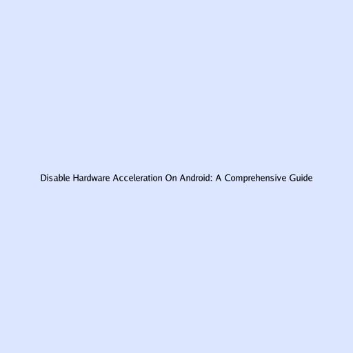 Disable Hardware Acceleration On Android: A Comprehensive Guide