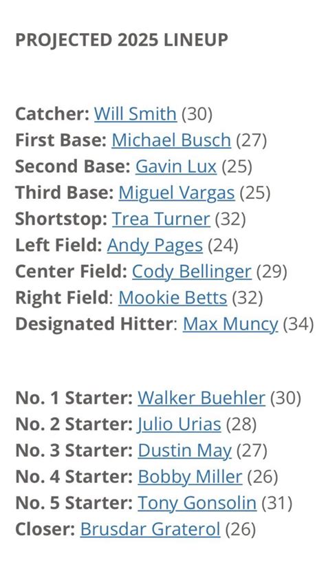 So, there you have it, folks! A glimpse into the Dodgers’ potential pitching rotation in 2025. It’s an exciting mix of established stars, rising prospects, and potential free agent additions. Of course, a lot can happen between now and then, but one thing is certain: the Dodgers will be committed to putting a competitive team on the field. Their fans deserve nothing less. Get ready for some exciting baseball!
