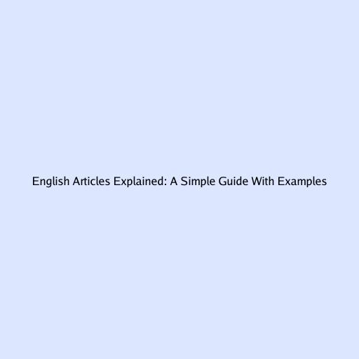 English Articles Explained: A Simple Guide with Examples