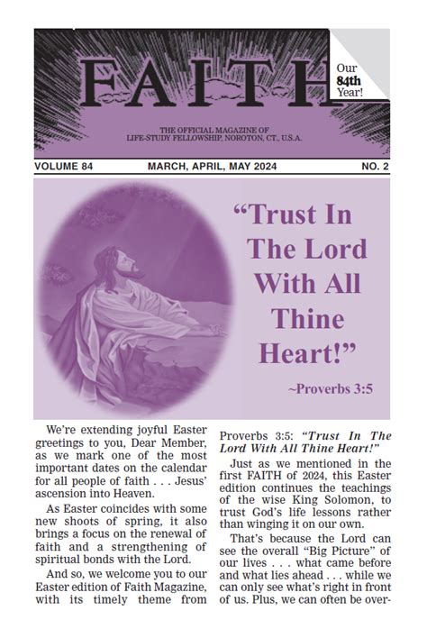 Let’s break down the key elements that make Faith Magazine so special: life, study, and fellowship. These are the cornerstones upon which the magazine is built, each contributing to a holistic and enriching experience. Life is about the nitty-gritty of everyday existence – the joys, the struggles, and everything in between. The magazine provides practical advice on managing relationships, pursuing personal growth, and navigating the challenges that life throws our way. It’s about helping readers to live more intentionally and with greater purpose. Then there’s Study , which underscores the importance of lifelong learning and spiritual exploration. The magazine offers articles, reviews, and insights on a variety of topics, including theology, philosophy, and current events. It encourages readers to delve deeper into their beliefs, challenge their assumptions, and expand their horizons. Finally, Fellowship highlights the significance of community and connection. The magazine features stories of people coming together, supporting one another, and building meaningful relationships. It emphasizes the importance of belonging and the power of shared experiences. Together, these three pillars create a dynamic and enriching environment for readers to learn, grow, and connect. The magazine offers a variety of content formats, including articles, interviews, personal essays, and profiles. This diverse approach ensures that there’s something for everyone, regardless of their preferred reading style. The writers and contributors come from diverse backgrounds, bringing a wealth of perspectives and experiences to the table. This adds richness and depth to the content, making it more engaging and thought-provoking. The magazine’s content is carefully curated to be both informative and inspiring. It’s about providing readers with practical advice, insightful perspectives, and stories that resonate with their lives. The overall goal is to empower readers to live more authentically, build stronger relationships, and find greater meaning in their lives. The magazine also features interactive elements, such as quizzes, polls, and discussion forums, to encourage reader engagement. This provides an opportunity for readers to connect with one another, share their thoughts, and learn from each other. In essence, Faith Magazine provides a comprehensive and engaging platform for exploring life, study, and fellowship. It’s a place where you can find inspiration, guidance, and a sense of belonging, empowering you to live your best life.