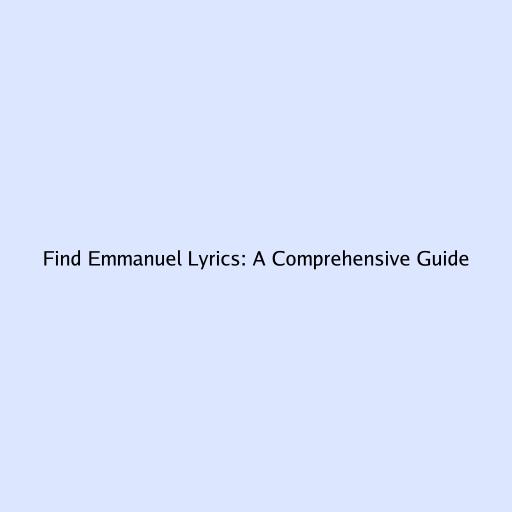 Find Emmanuel Lyrics: A Comprehensive Guide