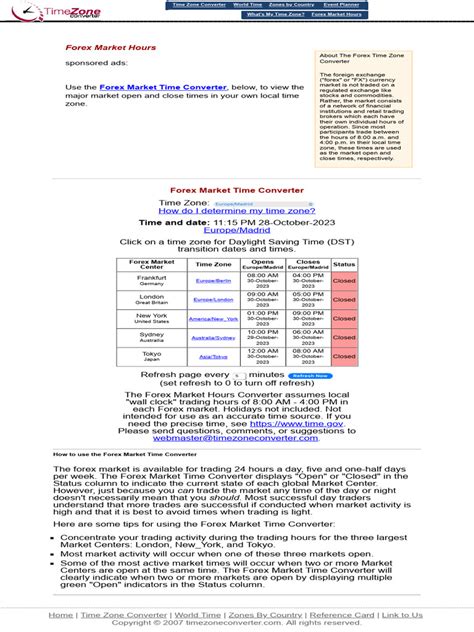 Hey traders, let’s talk about something super crucial for anyone diving into the forex market : understanding the perfect time to trade. It’s not just about having a hot tip or a fancy strategy; timing is everything . But with different market sessions happening across the globe – think Sydney, Tokyo, London, and New York – figuring out when to jump in can feel like a puzzle. That’s where a Forex Market Time Converter becomes your best friend. This isn’t just about converting times; it’s about unlocking opportunities, avoiding choppy waters, and maximizing your chances of success. We’re talking about those sweet spots where liquidity is high, spreads are tight, and volatility is just right for your strategy. Without a reliable converter, you might find yourself staring at a blank chart during peak hours or, worse, trying to trade when the market is practically asleep. So, buckle up, guys, because we’re about to break down why this tool is a non-negotiable for every serious forex trader, from beginners to seasoned pros. It helps you synchronize your personal schedule with the global forex clock, ensuring you never miss a significant trading opportunity. Imagine being able to instantly see when the London session overlaps with the New York session – that’s prime time for major currency pairs! Or perhaps you’re an early bird who wants to catch the Asian session; the converter makes this easy. It removes the guesswork and the manual calculations, giving you back valuable time to focus on what really matters: analyzing the markets and executing your trades. We’ll also touch on how different market sessions have distinct characteristics and how using the converter helps you align your trading style with these specific dynamics. Get ready to take your trading game to the next level!