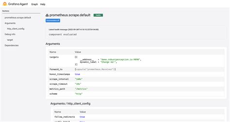 • Arguments: Components have arguments that you configure to customize their behavior. These arguments can be simple values, lists, or even other component references. For instance, the prometheus.scrape component has an 'targets' argument where you specify the endpoints to scrape.