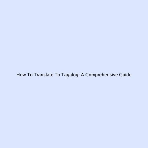 How to Translate to Tagalog: A Comprehensive Guide
