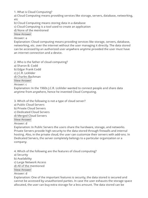 When you’re looking at quiz questions related to the fundamental definition of cloud computing, keep these core ideas in mind: on-demand self-service, broad network access, resource pooling, rapid elasticity or expansion, and measured service. These are the pillars that define cloud computing. For example, a question might ask about the primary benefit of cloud computing for businesses. While there are many benefits, the ones usually highlighted in introductory courses revolve around cost-effectiveness , scalability , and flexibility . You’re not tied down by expensive hardware that you might outgrow or underutilize. Instead, you can provision resources almost instantly and adjust them as needed. It’s a game-changer for startups and established enterprises alike. So, when you see questions about why businesses are flocking to the cloud, remember these key drivers: they want to innovate faster, reduce operational costs, and gain a competitive edge by leveraging scalable and flexible IT infrastructure. It’s not just a trend; it’s a fundamental shift in how we use and manage technology. The ability to access powerful computing resources without significant upfront capital investment is a massive draw, allowing businesses to focus their resources on their core competencies rather than managing complex IT infrastructures. This shift democratizes access to advanced technologies, leveling the playing field for smaller organizations.