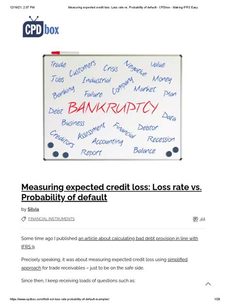 Hey guys, let’s dive deep into the world of IFRS 9 PD , which stands for Probability of Default. This is a super crucial concept in financial reporting, especially for banks and financial institutions. So, what exactly is this ‘Probability of Default,’ and why should you care? In simple terms, it’s the likelihood that a borrower will be unable to meet their financial obligations over a specific period. Think of it as a crystal ball for lenders, helping them gauge the risk associated with a loan or financial instrument. The International Financial Reporting Standard 9 (IFRS 9) brought significant changes to how financial instruments are accounted for, and the PD is a cornerstone of its Expected Credit Loss (ECL) model. This model requires entities to recognize impairment allowances for financial assets that are not measured at fair value through profit or loss. The ‘P’ in IFRS 9 PD is all about quantifying that risk. It’s not just a gut feeling; it’s a calculated, statistically derived number. Lenders use historical data, market conditions, and borrower-specific information to estimate this probability. The higher the PD, the greater the risk of loss for the lender, and consequently, the higher the impairment allowance they need to set aside. This directly impacts a company’s financial statements, affecting profitability and capital ratios. So, understanding IFRS 9 PD isn’t just an accounting exercise; it’s fundamental to assessing financial health and making sound lending decisions. We’ll be breaking down how it’s calculated, its importance in the ECL model, and some of the challenges involved in getting it right. Stick around, as this is going to be a fascinating exploration into the mechanics of modern financial risk management.