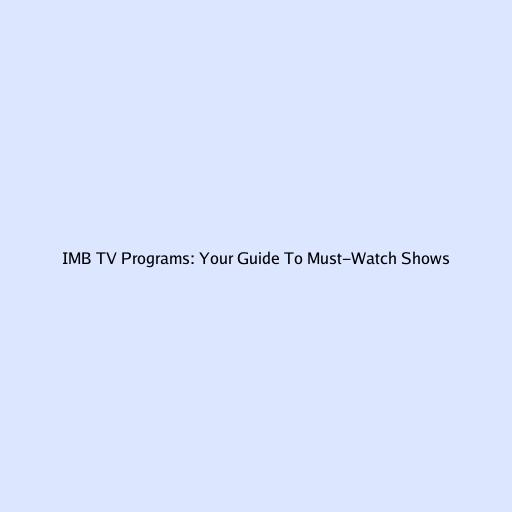 IMB TV Programs: Your Guide To Must-Watch Shows