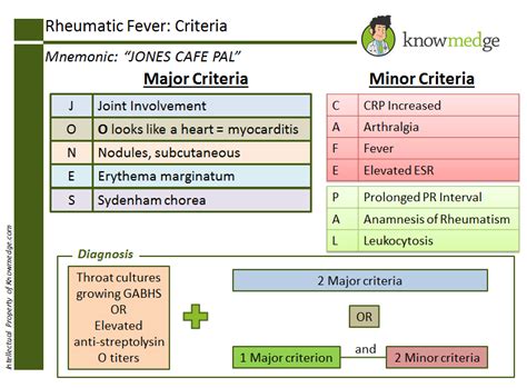 Now, let’s get down to the core of it: the major criteria of the Jones criteria . These are the big hitters, the signs that, if present, really make you sit up and take notice. Think of them as the main pillars supporting a diagnosis of acute rheumatic fever (ARF). The Jones criteria are typically divided into major and minor manifestations, and you need a certain combination of these, along with evidence of a recent streptococcal infection, to make the diagnosis. The two major criteria are carditis and polyarthritis . Let’s break these down because they are absolutely crucial. Carditis refers to inflammation of the heart. In the context of ARF, this can manifest in several ways: inflammation of the heart muscle (myocarditis), inflammation of the sac around the heart (pericarditis), or, most significantly, inflammation of the heart valves (valvulitis). Clinically, this might present as shortness of breath, chest pain, a new heart murmur, or even heart failure. An echocardiogram is often used to detect subtle signs of inflammation or valve damage. The damage to the valves, particularly the mitral and aortic valves, can be permanent and is the hallmark of rheumatic heart disease. So, carditis is a really serious sign that the ARF is affecting the heart directly. The second major criterion is polyarthritis . This means inflammation of multiple joints, typically large joints like the knees, ankles, hips, and elbows. It’s often described as migratory , meaning the inflammation moves from one joint to another. It’s usually very painful and often responds dramatically to aspirin – this responsiveness to aspirin is a key characteristic! Unlike other forms of arthritis, ARF-related arthritis doesn’t typically cause permanent joint damage. However, its presence, especially when migratory and affecting large joints, is a strong indicator of ARF. The other two major criteria, though less commonly the primary focus in simplified explanations, are chorea (also known as Sydenham’s chorea or St. Vitus’ dance) and erythema marginatum and subcutaneous nodules . Chorea is a neurological disorder characterized by involuntary, purposeless, jerky movements. It’s a late manifestation, often appearing weeks to months after the initial strep infection, and it’s a clear sign of central nervous system involvement. Erythema marginatum are distinctive skin rashes – pink, non-itchy, map-like lesions that usually appear on the trunk and limbs. Subcutaneous nodules are small, painless lumps that form under the skin, typically over bony prominences like the elbows, knees, and spine. While carditis and polyarthritis are often the most prominent and easily identifiable major criteria, chorea, erythema marginatum, and subcutaneous nodules are also considered major and carry significant weight in the diagnostic process. Remember, you typically need two major criteria, OR one major and two minor criteria, along with evidence of a preceding streptococcal infection, to diagnose ARF.