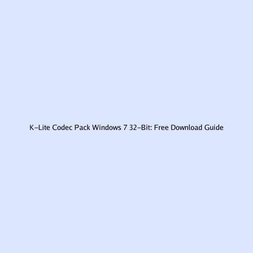 K-Lite Codec Pack Windows 7 32-Bit: Free Download Guide