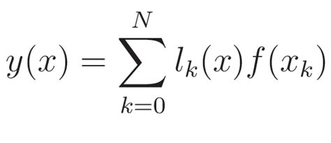 \[ P(x) = \sum_{j=0}^{n} y_j L_j(x) \]