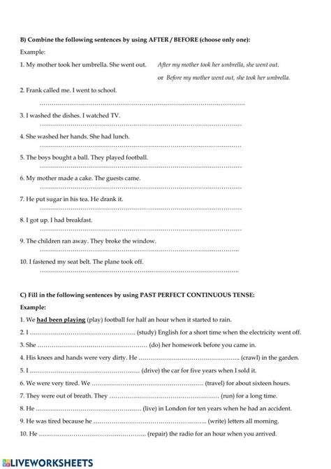 Exercise 2: Combine the Two Sentences Using the Past Perfect and Past Simple Tenses. Use ‘before’ or ‘after’ where appropriate.