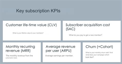 For subscription businesses, churn is the silent killer. You can acquire a ton of new customers, but if they’re leaving faster than you can sign them up, you’re in a leaky boat. KPIs help you spot churn indicators before they become a massive problem. They also highlight areas where customers are getting huge value, which you can then double down on. Plus, understanding your customer acquisition cost (CAC) versus their lifetime value (LTV) is fundamental. If you’re spending more to get a customer than they’re worth over their entire subscription period, you’ve got a problem, plain and simple. Tracking these KPIs allows for data-driven decision-making . Instead of relying on gut feelings or what your competitor is doing, you can make informed choices based on your own business performance. This leads to more efficient marketing spend, better product development, and ultimately, a more profitable and sustainable business. It’s about building a strong foundation that can withstand market fluctuations and customer behavior changes. You’re not just reacting; you’re proactively steering your business towards success. It’s the difference between being a passenger and being the pilot, guys.