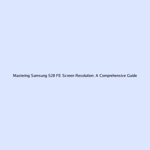 Mastering Samsung S20 FE Screen Resolution: A Comprehensive Guide