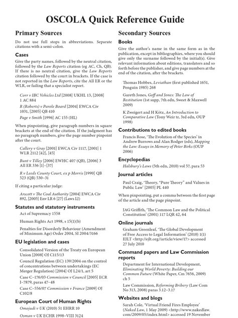 While the full OSCOLA manual is comprehensive, it can be daunting. Oxford University Press provides a fantastic, concise ‘Quick Reference Guide’ to OSCOLA. This is an invaluable tool for checking common citation formats quickly. Keep a PDF of this guide on your computer or print it out. When you’re writing and hit a snag with a citation, this guide is your best friend. It covers the most frequently encountered source types and provides clear examples. It’s the perfect companion for ensuring accuracy on the fly without having to wade through the entire manual every time.