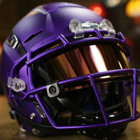 Now let’s consider the styles. You can choose from classic helmet designs with a simple, solid purple finish, or you can go all out with custom graphics and decals. Customization options are nearly endless. You can add stripes, logos, numbers, and even personalized messages to your helmet. This is where you can truly express yourself and create a unique piece of headgear. The face mask is another key element. It comes in a variety of styles and colors. Consider the type of face mask that best suits your position and playing style. Some players prefer a traditional face mask, while others opt for a more modern, streamlined design. The color of the face mask can also make a statement, you can match it with the helmet or use a contrasting color. Then there’s the finish: matte or gloss? A matte finish gives a more subdued, understated look, while a gloss finish adds a touch of shine and flair. Both look super cool.