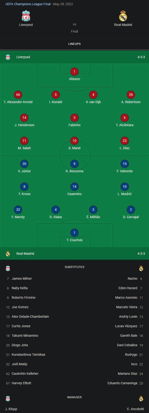 Before we even get to the Real Madrid vs Liverpool UCL final score , it’s crucial to understand the immense pressure and expectation surrounding this fixture. Liverpool, under Jürgen Klopp, had built a team that was feared across Europe. Their high-octane pressing game, fluid attacking movements, and solid defense made them a formidable opponent for anyone. They had already lifted the FA Cup and the Carabao Cup, and a Premier League title had slipped through their fingers by a single point. The Champions League was the last piece of silverware that could cement their legacy as one of the greatest Liverpool teams ever assembled. The hunger was palpable, and they were determined to avenge their 2018 Champions League final loss to Real Madrid, where a series of unfortunate events, including an injury to Mohamed Salah and some goalkeeping heroics from Loris Karius, saw them fall short. This time, they felt it was their moment, their chance to reclaim European glory and make amends for past heartbreak.