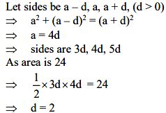 And check this: 6² + 8² = 36 + 64 = 100 , and 10² = 100 . This is just a scaled version of the 3-4-5 triangle (multiplied by 2), and it also satisfies the condition of sides being in arithmetic progression (6, 8, 10 has a common difference of 2).