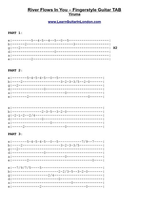 Let’s kick things off with the gentle introduction to “River Flows In You.” This is where we establish that peaceful, introspective mood. The tabs for this section are usually quite straightforward but require precision. We’ll begin with a C chord shape, but played fingerstyle. Your thumb will likely be on the C note (usually on the A string, 3rd fret), while your other fingers will pick out the melody notes on the higher strings. The first few notes are critical for setting the tone. You’ll see a pattern like: Bass note ©, then the melody note (often E), followed by another chord tone (like G), and back to a melody note (maybe C again). The key here is gentle articulation . You want each note to ring out clearly but not be harsh. Imagine you’re lightly touching the strings, coaxing the sound out. The tabs will show you exactly where to place your fingers and which string to pluck with which finger. Pay close attention to the timing. The original piano piece has a very deliberate tempo, and translating that to guitar means being precise with your rhythmic execution. Don’t be afraid to pause between phrases if needed to reset your fingers and your breath. It’s better to play it slowly and correctly than fast and sloppy. We’ll cover the specific fret numbers and string positions in the tab breakdown below. This introductory phrase repeats and evolves slightly, so once you master the first few bars, you’ll find the subsequent ones build upon that foundation. Focus on the dynamics , too. Even though it’s fingerstyle, you can achieve subtle variations in volume by how hard you pluck. For this intro, aim for a soft, almost ethereal sound. It’s like the first light of dawn touching the water. We want to draw the listener in with its simplicity and beauty. Mastering this opening section is incredibly rewarding because it’s so recognizable and sets the stage for everything that follows. So, take your time, follow the tabs meticulously, and let the tranquility of the melody wash over you. This is where the magic begins, guys!