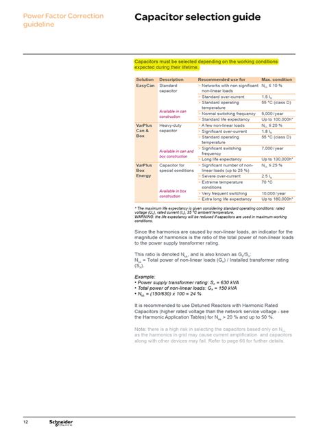 5. Consult the Schneider Capacitor Selection Chart: Locate the Schneider capacitor selection chart, either in a printed catalog or online. These charts usually present capacitors categorized by type, voltage, capacitance, and other key parameters.