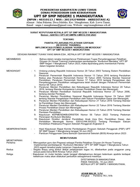 Alright, guys, let’s dive deep into the Surat Keputusan (SK) Panitia In-House Training (IHT) Kurikulum Merdeka for SMA , or Senior High School. This is a crucial document and process for schools transitioning to the new curriculum in Indonesia, the Kurikulum Merdeka. We’re going to break down what it is, why it’s important, and how to create one effectively. So, buckle up, and let’s get started!