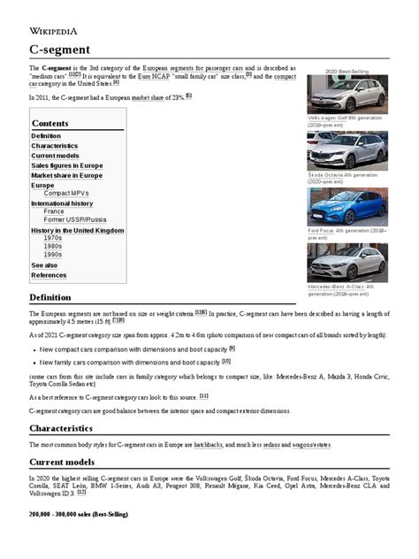 Hey car enthusiasts! Ever wondered about those mid-sized cars that seem to be everywhere on the road? You know, the ones that aren’t tiny hatchbacks but aren’t massive SUVs either? Well, guys, you’re probably looking at Segment C automobiles , and today, we’re diving deep into what makes them tick. Think of these cars as the sweet spot in the automotive world, offering a fantastic balance of practicality, comfort, and often, a good dose of fun. They’re the go-to choice for so many people because they just work for a huge variety of lifestyles. Whether you’re a young professional needing a reliable daily driver, a growing family that needs a bit more space than a subcompact but doesn’t want a gas-guzzler, or even an empty nester looking for something comfortable and easy to maneuver, Segment C has got your back. We’re talking about cars that are generally built on a common platform, meaning they share a lot of underlying engineering, which often translates to better value and more refined driving dynamics .