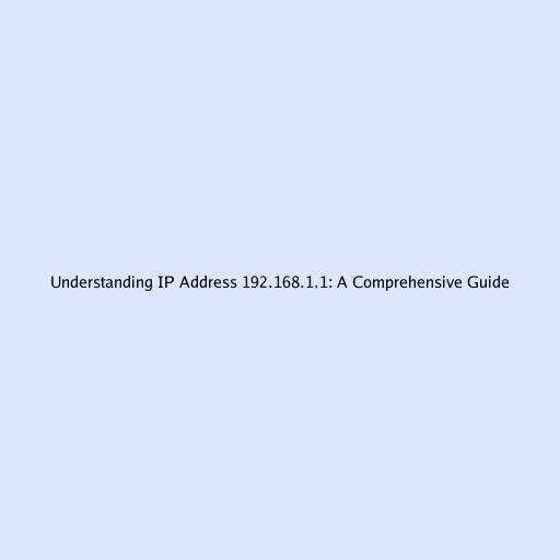 Understanding IP Address 192.168.1.1: A Comprehensive Guide