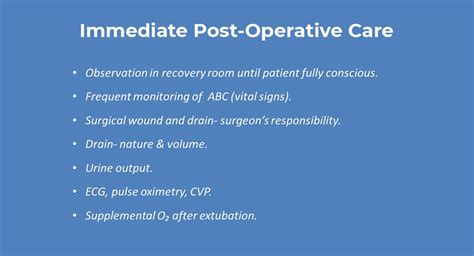 Wound care is another crucial aspect of the immediate post-op phase. Proper wound care helps prevent infection and promotes healing. Your surgical incision will be covered with a dressing to protect it. You’ll need to follow your healthcare provider’s instructions on how to care for your wound at home. These instructions will include how often to change the dressing, how to clean the incision site, and what signs of infection to look out for. The goal is to keep the wound clean, dry, and protected. So, what should you look for? Look out for signs of infection. The signs of infection include increased redness, swelling, warmth, pus, and fever. Also look for any new or worsening pain. If you notice any of these signs, contact your healthcare provider immediately.