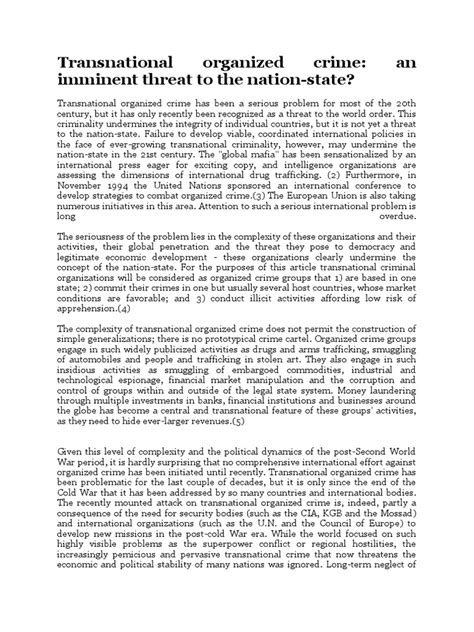 Hey guys! Let’s dive deep into the world of transnational organized crime . This isn’t just about your local neighborhood thugs; we’re talking about sophisticated, cross-border criminal enterprises that operate on a global scale. These groups are incredibly adaptable and often exploit vulnerabilities in legal systems, economies, and societies to carry out their illicit activities. Their operations can range from drug trafficking and human smuggling to cybercrime, arms dealing, and even environmental exploitation. The sheer scale and complexity of transnational organized crime make it a formidable challenge for law enforcement agencies worldwide. Understanding how these organizations function, their motivations, and their impact is crucial for developing effective strategies to combat them. We’ll explore the different facets of this problem, including the types of crimes committed, the structures of these groups, and the global efforts underway to disrupt their operations. So, buckle up, because this is a topic that affects us all, directly or indirectly, and shedding light on it is super important for our collective safety and security. The fight against these criminal networks is ongoing, and it requires international cooperation and a comprehensive understanding of the threats they pose.