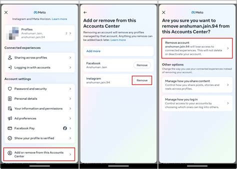 6. Remove the Facebook Account: You should see your Facebook account listed here. Click “Remove” next to the Facebook account you want to unlink. Instagram will ask you to confirm your decision. Just follow the on-screen prompts to complete the process.