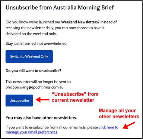 Sometimes, you might be directed to a preference center where you can choose to unsubscribe from specific types of emails or update your subscription settings. Take a moment to explore these options if you want to customize your email preferences.