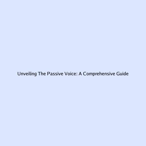 Unveiling the Passive Voice: A Comprehensive Guide