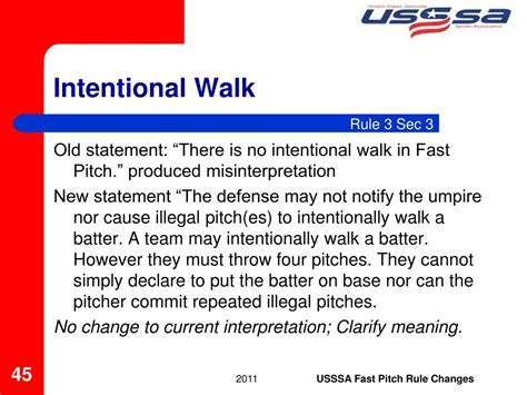 Alright, let’s get into the nitty-gritty. The USSSA softball intentional walk rules are designed to streamline the process, focusing on efficiency and fairness. Here’s a breakdown of the key points: