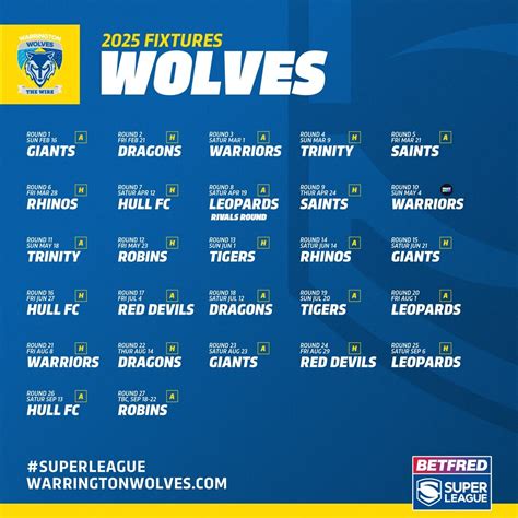 Hey rugby league fanatics! Are you on the hunt for the latest and greatest Warrington Wolves fixtures ? Well, you’ve landed in the perfect spot, guys! We’re diving deep into everything you need to know about the Wolves’ upcoming games. Whether you’re a die-hard fan or just dipping your toes into the electrifying world of Super League, keeping track of the fixture list is key. It’s not just about knowing when they play; it’s about understanding the journey, the challenges, and the sheer excitement that each game brings. We’ll be covering match dates, opponents, venues, and how you can catch all the action. So, grab your scarf, get your chants ready, and let’s get stuck into the Warrington Wolves’ fixture schedule!