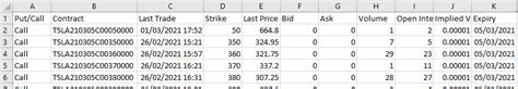 Understanding the Yahoo Options Chain for Tesla